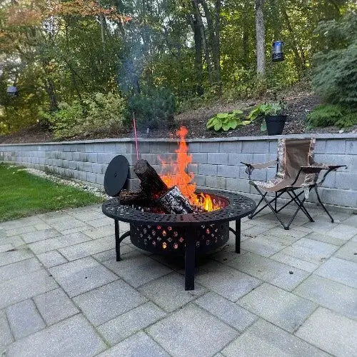 Much less than basic fire pits! Our engineered ventilation system with geometric cut-outs promotes excellent airflow for cleaner burning. With properly seasoned hardwood, you get beautiful flames with minimal smoke. Enjoy authentic fire ambiance without the choking smoke of cheaper alternatives.
